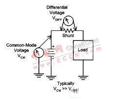 我們還要考慮到另一種共模情況:電源線路的分路開啟,且接地短路的情況。這時共模電壓為零。電流流動時必須進行檢測,也就是說,放大器在零共模電壓時也要能正常工作。