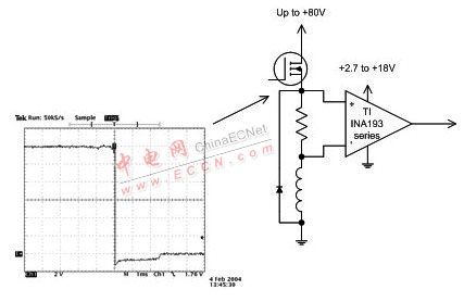 最后,我們不妨考慮一下如圖 4 所示的脈沖寬度調制 (PWM) 螺線管驅動器的情況。在本例中,螺線管頂部開啟時達到電池電壓。開關關閉時,電壓將回到二極管電壓降大小的負電平上。這就要求電流分路.在低至 –2V 的共模電壓下仍能工作。