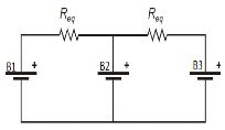 該電路可以等效成如圖3 所示電路,在每兩個電池單體之間連接一個等效電阻,可以推出如等式淵1冤給出的等效阻值。這種方法由于能量逐個傳遞,因此均衡時間較長,可以根據等式淵1冤,通過改變開關器件的開關頻率和電容容值的方法調節等效電阻,改變充放電電流。