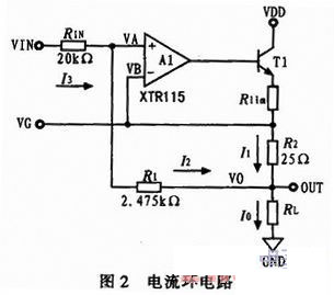 XTR系列是美國BB(BURR-BROWN)公司生產的精密電流變送器,該公司現已并入美國Texas Instruments公司。該系列產品包括XTR101,XTR10 5,XTR106,XTR110,XTR115和XTR116共6種型號。其特點是能完成電壓/電流(或電流/電流)轉換,適配各種傳感器構成測試系統、工業過程控制系統、電子秤重儀等。其中,XTR115和XTR116能夠滿足工業測量標準的兩線4~20 mA電流環電路,該電路設計巧妙、使用方便、超低靜態電流,非常適合于變送器等典型工業測量應用之中。