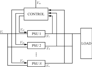 隨著電力電子技術的發展,各種電子裝置對電源功率的要求越來越高,對電流的要求也越來越大,但受構成電源模塊的半導體功率器件,磁性材料等自身性能的影響,單個開關電源模塊的輸出參數(如電壓、電流、功率)往往不能滿足要求。若采用多個電源模塊并聯供電,如圖1所示,就不但可以提供所需電流,而且還可以形成N+m冗余結構,提高了系統的穩定性,可謂一舉兩得。