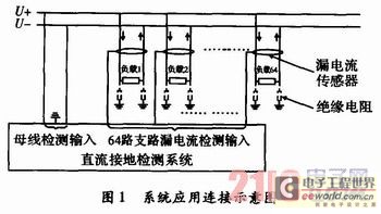直流供電系統(tǒng)由于長時間在惡劣環(huán)境中工作,線路、連接器、接線端子、刀閘等會產(chǎn)生老化,從而導致正負母線的絕緣性能降低,對地絕緣電阻減小,產(chǎn)生漏電電流。漏電流的產(chǎn)生將會引起流入和流出用電負載的電流不一致(部分電流經(jīng)過絕緣電阻流入大地)。非接觸式直流漏電流傳感器,能夠把流入和流出傳感器的直流電流差感應成直流電壓。這樣在每個用電負載的輸入和輸出線路上安裝一個非接觸式直流漏電流傳感器,就能檢測出每個用電負載或者線路的漏電流。直流接地檢測系統(tǒng)則根據(jù)漏電流傳感器的感應電壓求出漏電流的大小。然后通過“平衡-不平衡法”檢測出正負母線對地電壓,根據(jù)母線電壓和漏電流求出各個支路絕緣電阻的大小。