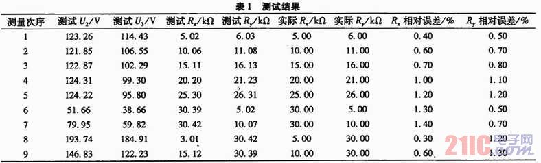 由1~5組可知,當絕緣電阻大時,測試相對誤差略有增大,這是因為采樣A/D的輸入阻抗較小,因此當測試電阻較大時造成誤差相對大些。另外,當負母線的絕緣電阻<30 kΩ、負母線絕緣電阻正常時,前者的測量效果差些。因為此時實際測得的電壓U2和U3都較小,A/D采樣的相對誤差大一些,所以電阻的誤差也大一些。不過遠好于平衡橋法無法發(fā)現(xiàn)兩點接地的情況,可以正卻發(fā)現(xiàn)接地。絕緣檢測的環(huán)境下,只要絕緣電阻>20 kΩ即認為絕緣良好,因此對于絕緣檢測的應用環(huán)境,本系統(tǒng)能夠比較精確的測試各路的絕緣電阻,完全滿足應用環(huán)境的需要。