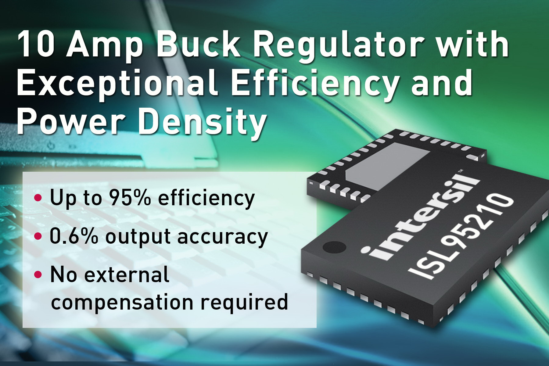 全球高性能模擬混合信號(hào)半導(dǎo)體設(shè)計(jì)和制造領(lǐng)導(dǎo)廠商Intersil公司宣布,推出具有優(yōu)異效率和功率密度的最新10A集成式FET同步降壓穩(wěn)壓器---ISL95210。