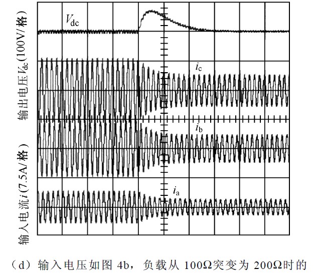 ③輸入缺相時,由于所缺相的電流必為0 ,由式(8 )和式(20 )可知,其他兩相的電流也必為0 .此時,整流器不能正常工作。