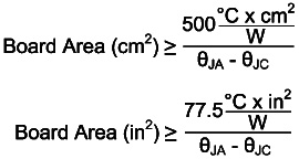 所需的PCB板面積近似值未考慮到散熱孔所發(fā)揮的作用,這些散熱孔將熱量從頂部金屬層(封裝連接至PCB)向底部金屬層傳遞。底層用作第二表面層,對流可以從這里將板上的熱量傳送出去。為了使板面積近似值有效,需使用至少8~10個散熱孔。散熱孔的熱阻近似于下列方程式值。