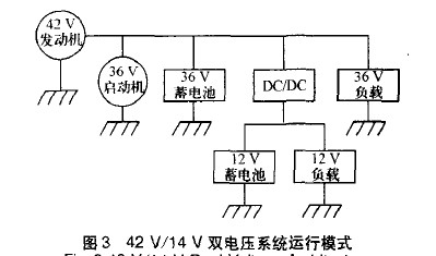 在新的電氣系統中,有兩種實施方案:一種是全車42V單一電壓方案;另一種是42V/14V雙電壓方案。