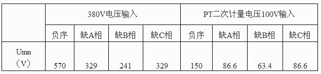 從表中可發現,380V電壓回路發生反相序接線時,Umn輸出電壓量最大;PT二次計量電壓回路發生B相缺相時,Umn輸出電壓最小。