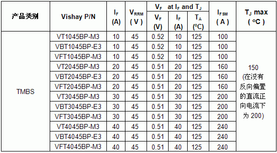 TMBS? TrenchMOS:Vishay發布12個采用不同封裝的45V 勢壘肖特基整流器