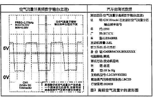 高頻數字式空氣流量計出現在通用汽車3.8L V6型發動機上,它是日立(Hitachi)生產的傳感器。此外,高頻數字式空氣流量計還應用于凌志(Lexue)以及其它汽車中。傳感器的脈沖大多數幅值為5V,怠速時頻率:2.77kHz。