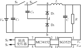 為提高電路的效率及功率器件工作的可靠性,一般需要將控制電路的輸出信號加以功率放大。本文采用MC34152加隔離變壓器驅動的方法來設計驅動電路。