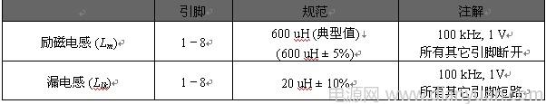 圖 3 所示為參考設(shè)計的完整原理圖,變壓器的電氣特性如表 1 所示。