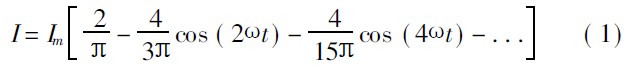 從上式可以看出, I 除了一直流分量之外, 還包含一系列的高頻諧波的交流分量(如圖2 所示波形)。這樣不但影響了電源線上的電流, 并使電流發生畸變, 同時也產生射頻干擾。