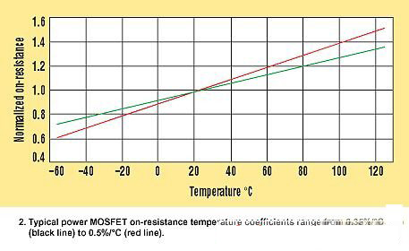 對于開關MOSFET和同步整流器兩者,都是選擇作為此迭代過程開始點的最大允許裸片結溫(TJ(HOT))。大多數(shù)MOSFET數(shù)據(jù)參數(shù)頁只給出25°C的最大RDS(ON),,但近來有一些也提供了125°C的最大值。MOSFETRDS(ON)隨著溫度而提高,通常溫度系數(shù)在0.35%/°C至0.5%/°C的范圍內(nèi)(圖2)。如果對此有所懷疑,可以采用更悲觀的溫度系數(shù)和MOSFET在25°C規(guī)格參數(shù)(或125°C的規(guī)格參數(shù),如果有提供的話)計算所選擇的TJ(HOT)處的最大RDS(ON):RDS(ON)HOT=RDS(ON)SPEC×[1+0.005×(TJ(HOT)?TSPEC)]