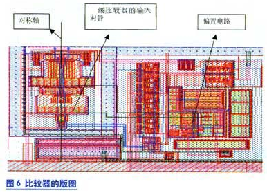 芯片采用了0.18μm的1P6MCMOS設(shè)計(jì)工藝,在實(shí)現(xiàn)高分辨率的同時(shí)也能獲得較高的速度,模擬結(jié)果表明,分辨率可以達(dá)到12bit。在版圖設(shè)計(jì)中,為了增強(qiáng)差分管的匹配性,管子和連線都采用全對(duì)稱的設(shè)計(jì)結(jié)構(gòu),版圖如圖6所示,面積為120μm×130μm。