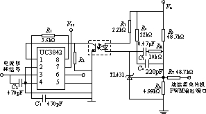 UC3842為電流型脈寬調制器,具有管腳數量少、外圍電路簡單、安裝與調試簡便、性能優良、價格低廉等特點,特別適合用于低成本的小功率反激電路。由于該應用電路已極為成熟,此處就不詳加敘述。
