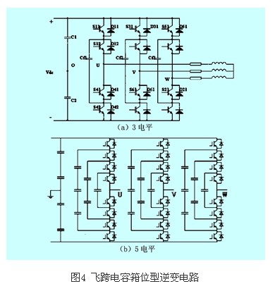 1992年,t·a·maynard和h·foch提出了如圖4(a)所示結構的飛跨電容箝位型逆變電路,其特點是用箝位電容代替圖3中所述的箝位二極管,直流側電容不變,其工作原理與二極管箝位型逆變器相似。