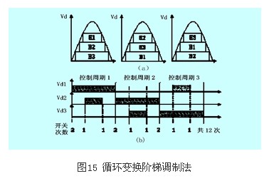 也稱錯位等周期循環法。它通過改變各串聯逆變單元的控制脈沖和循環次序使得在兩個控制周期切換時,所有功率器件不動作,大大減少開關次數。其輸出脈沖在一個控制周期中或者從控制周期的起點開始,或者在控制周期的終點結束。如圖16所示,其中k=3。