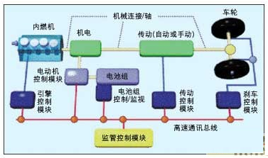 正如兩個(gè)圖中所示,要使混合型汽車良好工作需要使用許多嵌入式控制器。這些控制器都是相互連接的,通常采用高速的控制器局域網(wǎng)(CAN)總線來互連。這些控制器中的固件必須控制系統(tǒng)中各自的部分并同其它控制器實(shí)時(shí)協(xié)調(diào)。這要求設(shè)計(jì)和開發(fā)許多新的控制算法和軟件,甚至對發(fā)動(dòng)機(jī)、傳輸和防抱死剎車系統(tǒng)(ABS)等成熟的控制系統(tǒng)也是如此。