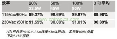 表2 19V/90W輸出的適配器效率表現