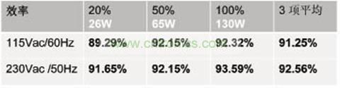 表3 130W/19V一體機PC電源效率