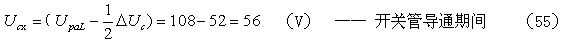 這里順便說(shuō)明一下,為什么(53)式中的分流系數(shù)取值為0.5,而不是其它數(shù)值。因?yàn)椋至飨禂?shù)r的取值范圍是0~1,它是一個(gè)動(dòng)態(tài)系數(shù),它的大小,除了與輸入電壓和輸出功率和RCD電路中電容、電阻的大小有關(guān)外,還與開關(guān)管的關(guān)斷時(shí)間,以及電流大小有關(guān)系。