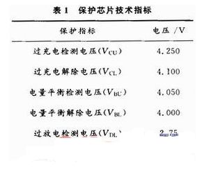 圖5摘取了保護板1中前三級(1~3級)保護電路,6~10級保護電路與此相似。所選取的芯片技術指標如表1所示,對于過充電、電平衡和過放電功能都有其檢測和解除電壓,以確保各狀態(tài)的可靠進入和退出。