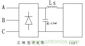 在此應用場合中,可以視IGBT逆變器為整流電路的負載,此開關器件負載具有突變電流,而根據公式(1)可知