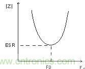 從圖中可見,隨頻率增加,阻抗逐漸降低,在f=f0時,具有最低的阻抗,此即等效串聯電阻ESR;當f>f0時,電容器已不具有容抗性質,而呈現感抗,這時電容器已失去作用。因此電容器工作頻率應當遠小于諧振頻率。