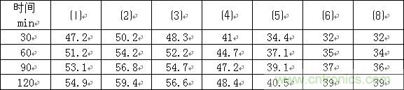 備注:溫度點7未測量到,測試電流及頻率與表1相同