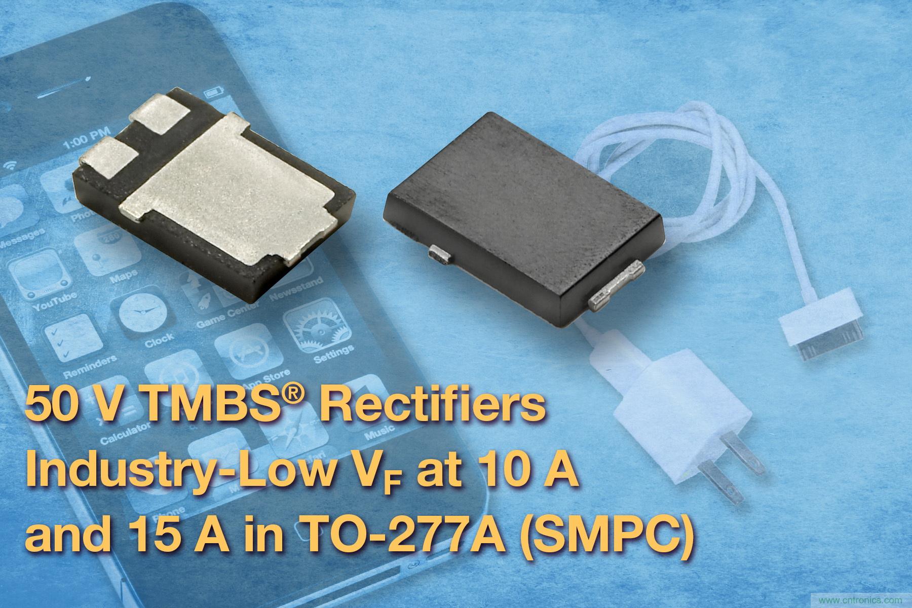 新款50V V10PN50和V15PN50 TMBS整流器現可提供樣品,并已實現量產,大宗訂貨的供貨周期為十八周。