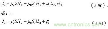 由此可以求得電流I2流過變壓器次級(jí)線圈N2產(chǎn)生的磁通量為: