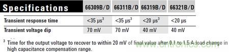 3. 瞬態(tài)響應(yīng)時(shí)間就是電壓恢復(fù)指定電源范圍內(nèi)需要的時(shí)間值。