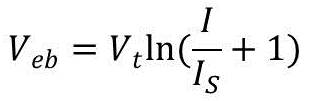 這兩種變化會導(dǎo)致雙極性晶體管的基極-發(fā)射極電壓Veb發(fā)生偏移?;鶚O-發(fā)射極電壓可按公式7確定: