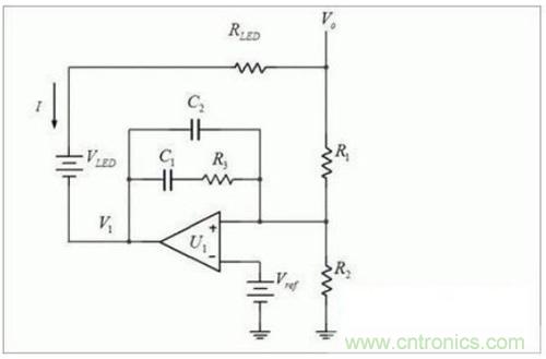 然而這依然是個(gè)復(fù)雜的反饋,比電壓型運(yùn)放的反饋,復(fù)雜。電壓型反饋,只有一個(gè)標(biāo)準(zhǔn)的反饋回路,開(kāi)環(huán)傳遞函數(shù),一目了然。而這個(gè)電流的復(fù)雜多了。如果不是把Vo/Rled 視為擾動(dòng),我們幾乎很難用通常的補(bǔ)償方法補(bǔ)償。最后,需要指出的是,只有教科書(shū)中