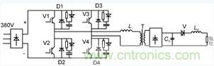 此處將限流電感L放在變壓器原邊。這除了能實現功率管的零電壓開通外,例如在V1,V4關斷后,由于L的續流作用,D2,D3導通,則V2,V3可實現零電壓開通;還可分擔變壓器原邊繞組上的壓降,減少變壓器匝數,進而減小變壓器磁心。
