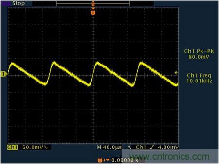 以安森美NCV4949來講,在其輸出端加一個10uF的陶瓷電容,在電容后端測量到的瞬態響應如圖(AC mode):