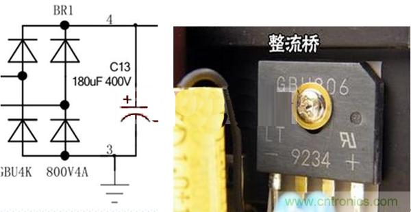 圖4中的RT為NTC,電阻值隨溫度升高而降低,抑制開機時產(chǎn)生的浪涌電壓形成的浪涌電流。