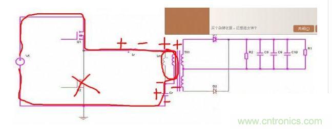 上管開通,注意諧振電感、勵磁電感、諧振電容的正負。