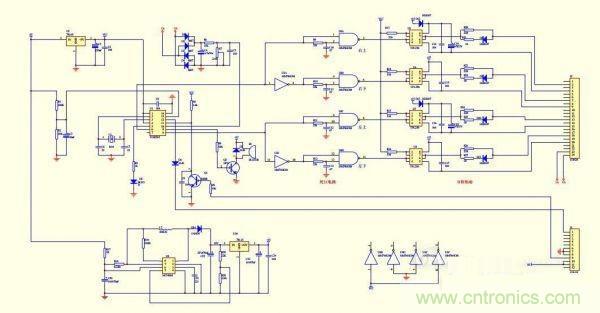 SPWM的核心部分采用了TDS2285單片機芯片。U3、U4組成時序和死區電路,末級輸出用了4個250光藕,H橋的二個上管用了自舉式供電方式,這樣做的目的是簡化電路,可以不用隔離電源。