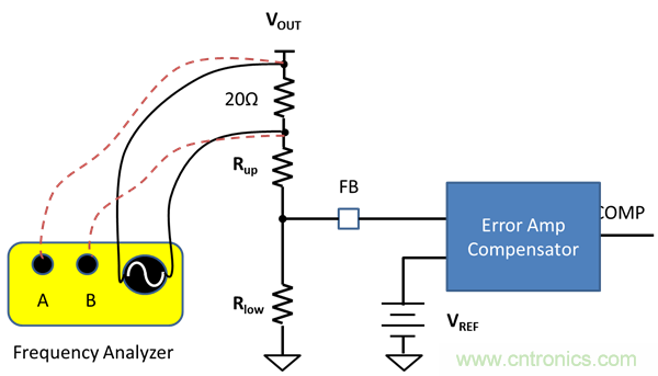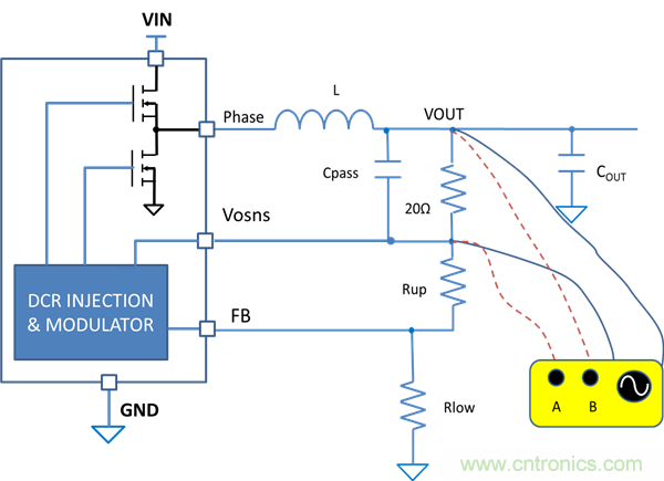 對DCAP2和DCAP3控制系統而言,DCR注入電路被集成在硅芯片內部。相同的技術均適用。圖6展示了DCAP2和DCAP3調節器的環路波特圖測試設置。