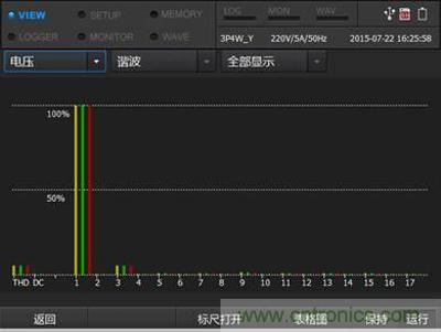 逆變器在將直流轉換成交流輸出之后,交流的電能質量是檢測逆變器的一個很重要的指標。輸出端的交流如果存在電能質量問題,不僅僅是影響逆變器使用效率,減少逆變器使用壽命,更有可能給使用者帶來生命財產的安全隱患。例如,由逆變器輸出的交流電往往含有諧波,下圖為E6500對交流的諧波檢測。