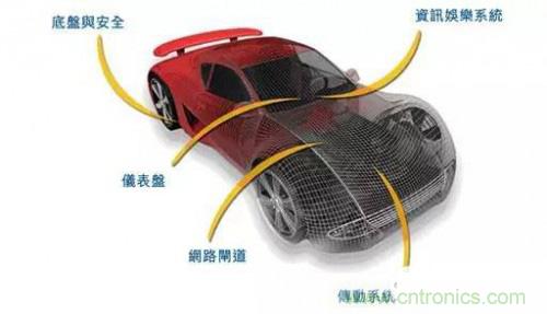 圖1:當(dāng)代汽車內(nèi)部的部份電子系統(tǒng)。