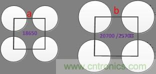 由于21700 /20700 /20650電池容量的增加在實際PACK設(shè)計中需要考慮單支電池安全失控后對周圍電池的影響及問題的可控性,所以需要重新計算電池之間的“安全設(shè)計距離”,這個距離肯定要大于18650的(b 》 a),這進一步增加了體積。