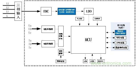 圖一 三相四線制智能電表方案框圖