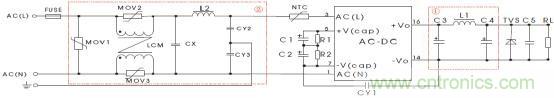 LS03-16BxxSS系列電源,如果需應用在電磁環境比較惡劣的場合中,為使產品工作穩定且不被電磁干擾輕易損壞,建議在電源輸入端口增加相應的EMC外圍電路,以滿足一定指標的電磁兼容性能,如圖(二)所示為推薦電路供參考: