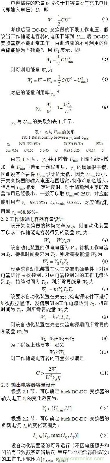 【導讀】為了在失電情況下繼續維持智能終端設備短暫工作,提出了一種基于電容儲能的自動化終端備用開關電源解決方案。論述了電路組成、下限工作電壓選取和儲能電容器容量設計方法。