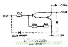 例如,達林頓管(其實就是復合三級管)集成塊ULN2003. 內部一路的電路如圖,就是一個集電極開路電路。