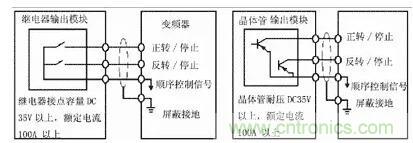 在使用繼電器接點時,常常因為接觸不良而帶來誤動作;使用晶體管進行連接時,則需考慮晶體管本身的電壓、電流容量等因素,保證系統的可靠性。