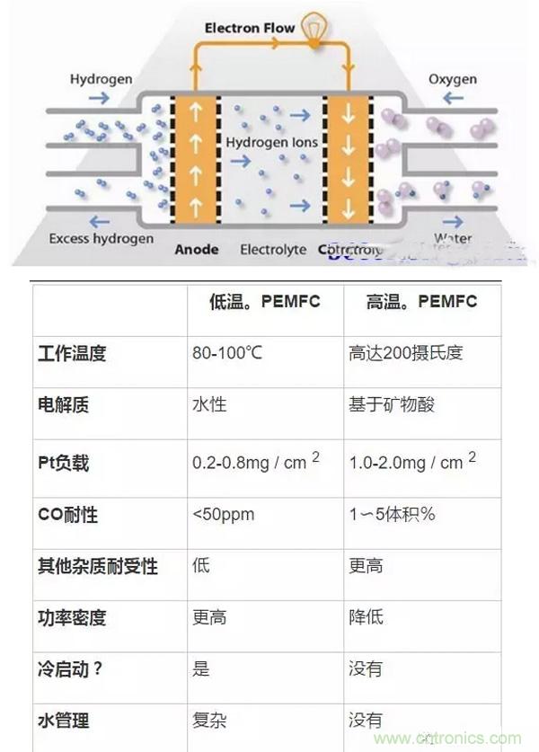 HTPEMFCs不優于低溫PEMFC;兩種技術都在其優勢所在的地方找到了利基。下表總結了兩種PEMFC變量之間的差異: